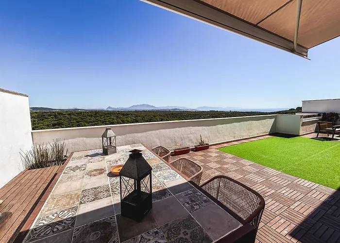 Overlooking the sea, the 2-room Penthouse Apartment With Sea Views Alcaidesa is 3.9 km from Club de Golf Valderrama in Alcaidesa. This 125 m^2 apartment boasts a tennis court and a golf course, perfect for guests who enjoy staying active.
